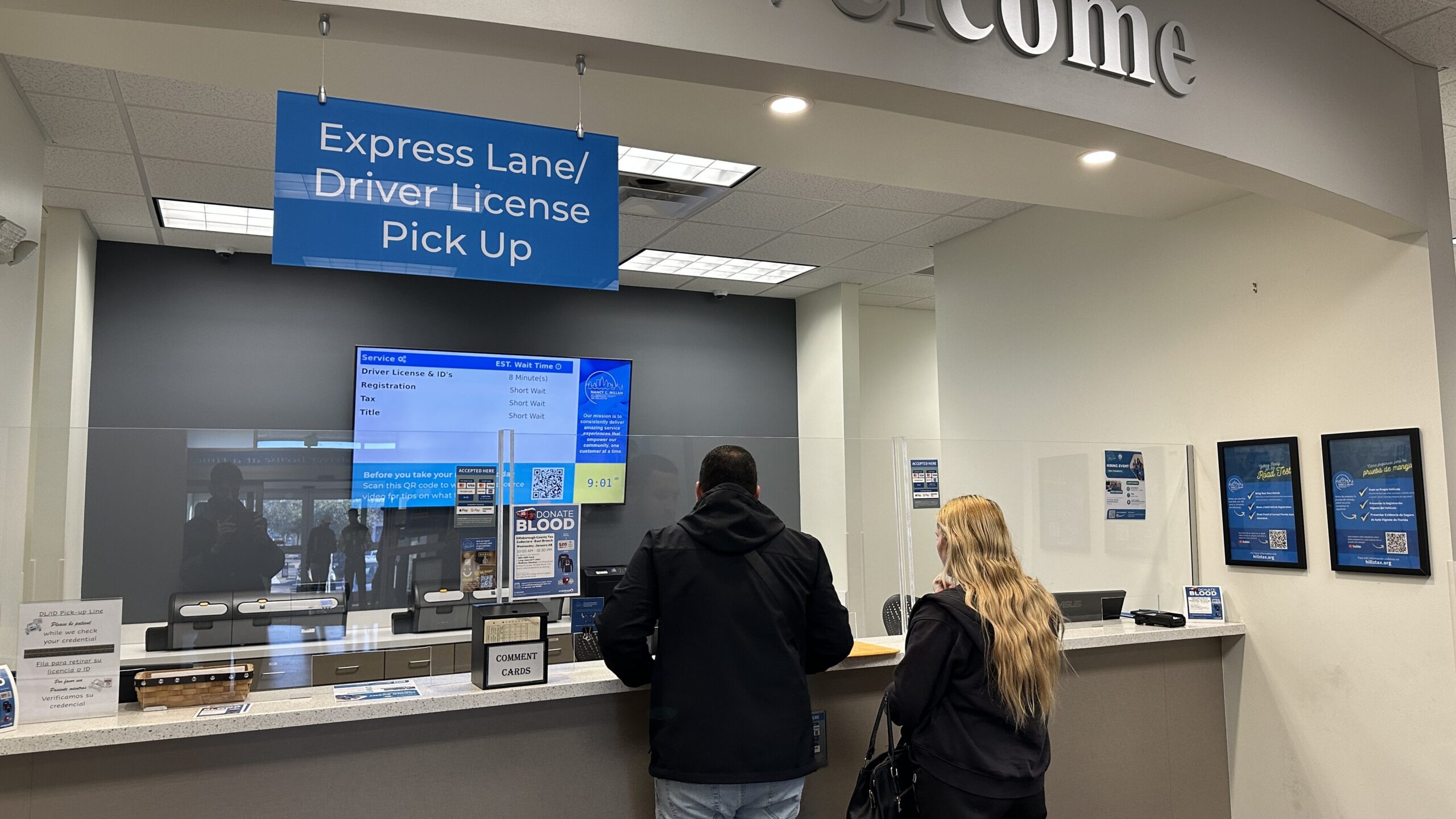 As an added convenience, certain transactions are available for express pickup. Start your transaction online, then pick up your documents at one of our offices – no waiting in line required. Just walk straight to the welcome desk under the blue Express Lane sign and let the staff know you’re picking up documents.